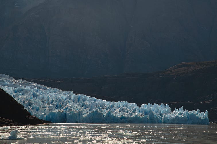 Then along the gravel road to Lago Grey. I’d loaded up all my camera gear. I’ve taken boat trips along the fronts of a glacier before. It’s ticket office, short walk, pier to boat. Surely?