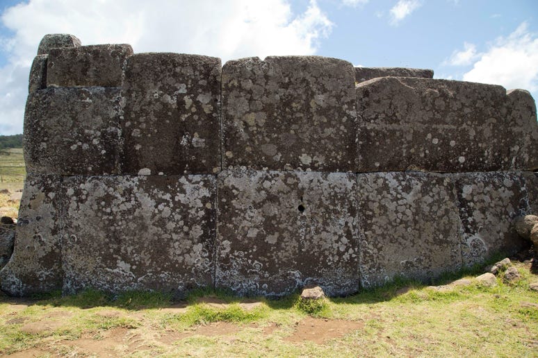 We walked to the back to admire the stone work used to create the platform. Pieces from older moai had been incorporated into the stonework.
