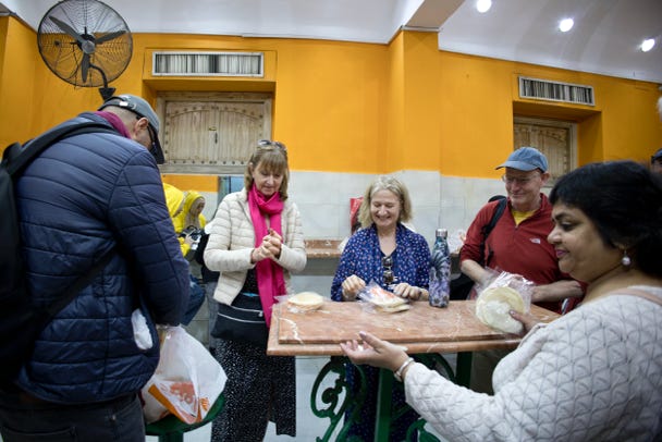 Around 1pm we set off. The afternoon was dedicated to a food tour. Our guide took us to three different small cafes in which we had local dishes. We also visited a small drinks place to sample four fruit juices. The streets were busy with people, and our guard kept a close eye on us.