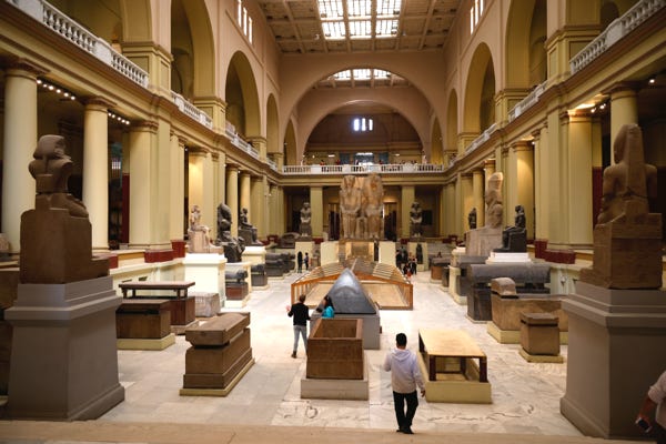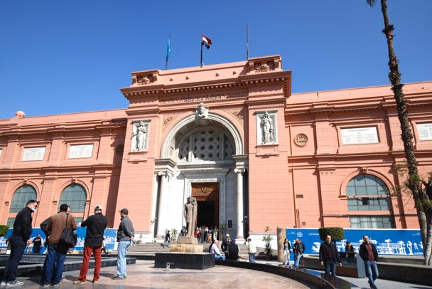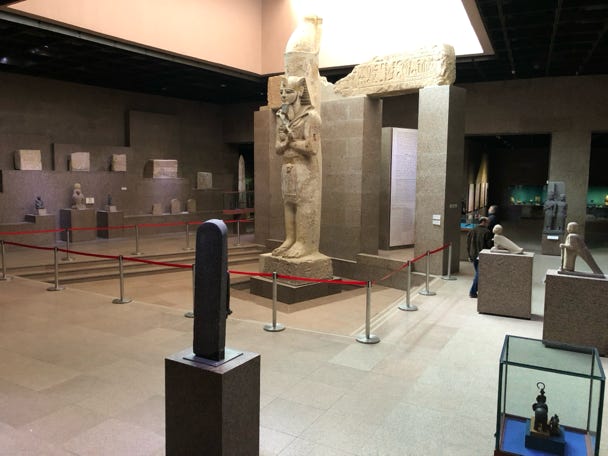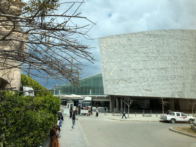 Our first stop was the Egyptian Museum. Although a new museum is being built near the pyramids, until its completion the various artifacts from around Egypt are in the building erected in 1902. Supposedly masks were required inside, but at least a third of people weren’t wearing them.