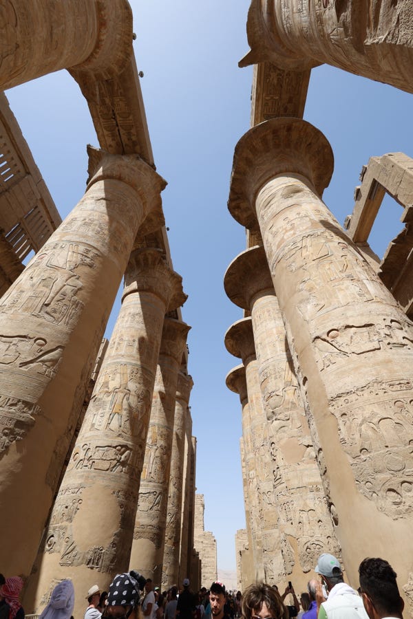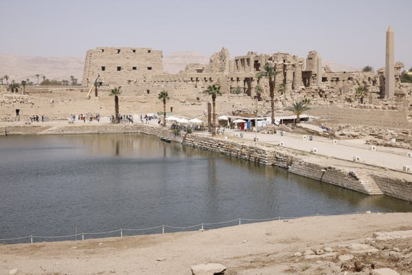 Karnak was built over many centuries, starting around 2000 BCE. The sheer scale was impressive. There was so much of it. Tall walls, columns, side chapels, obelisks, statues, engravings. Our guide led us through the complex, ending at the sacred lake.
