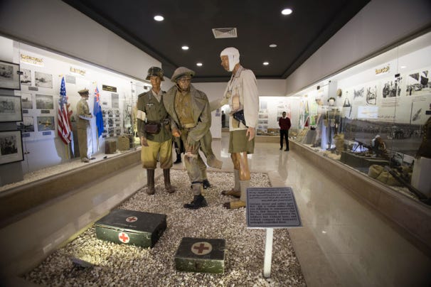We visited the museum dedicated to the World War II battles which took place at the spot. Outside there was a collection of military hardware, including a couple of planes. Inside the building were various sections dedicated to the campaigns and the troops. I hesitate to write this, as I realise English is not the native language of Egypt, but even so, for a place which holds an important place in history, you would hope care and attention would have been paid to the explanatory placards. However, spelling and grammatical errors abounded. Sometimes it was hard to even work out what you were being told. One read, ‘Then churchel had to quit the supreme commander of the British forces from his commanding.’
