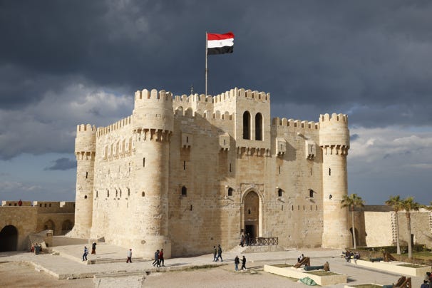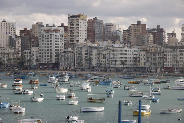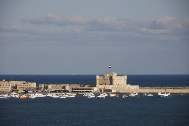 As we approached Alexandria, the Mediterranean sea came into view. The turquoise waters were whipped high by winds, waves crashing against sea barriers.