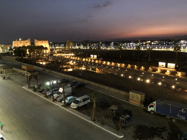 We drove back to Luxor, arriving at our hotel at 5pm. After such a large and late lunch, I felt no need for another meal. I stayed in our hotel room (which had a balcony which overlooked the busy road and a car park!) and worked on photos.
