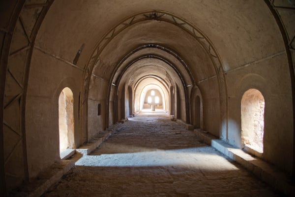 Our last stop was to the Saint Bishoy Monastery. Most of the buildings are modern, but we did visit the oldest part which had a wooden drawbridge. Should attackers approach the monastery, the drawbridge could be pulled up, and the monks survive inside the building. A kitchen and chapel were built into the walls.