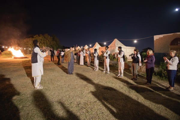 We boarded the boat the same way we had left, by stepping on another one first. Our last stop was at a Nubian restaurant for dinner. The staff greeted us with song and dance, and led us (still singing and dancing) up to a large grassy area. Most of our party were pulled into various circle dances.