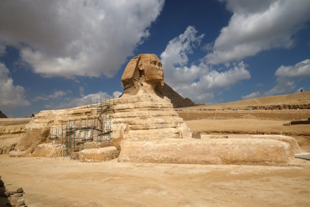 Our next stop was to view the Sphinx. We felt she was much smaller than we’d expected! Pigeons had settled on her head, which felt somehow disrespectful.