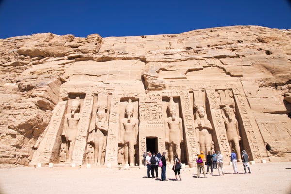 Ramesses II had a temple built nearby for his favourite wife, Nefertari. Carvings of her took on aspects of cows, which reflected the goddess Hathor and also symbolised motherhood.