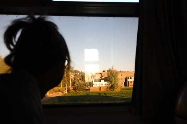 Despite the train jostling and creaking, I slept pretty well. Roommate and I had agreed to set our alarms for 6am, so we woke to see the early morning light on the fields and houses. The steward took orders for coffee, and informed us that it would be another four hours before we reached Aswan.