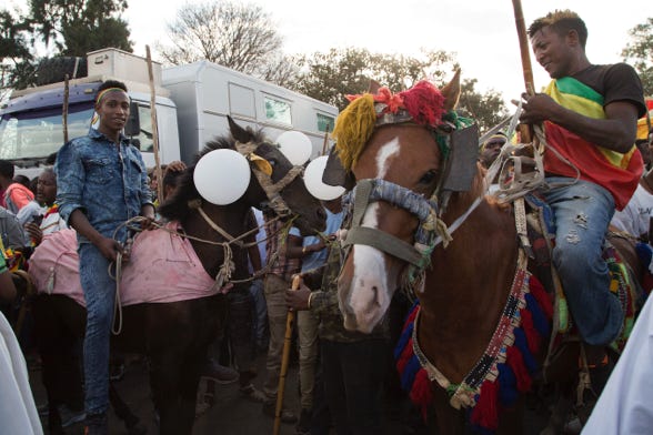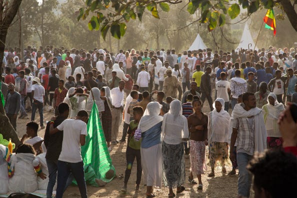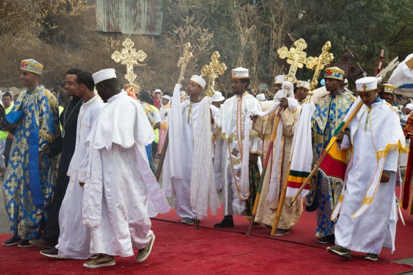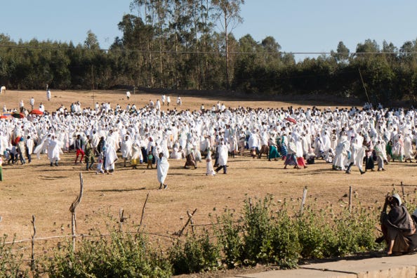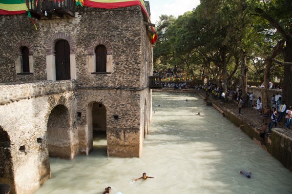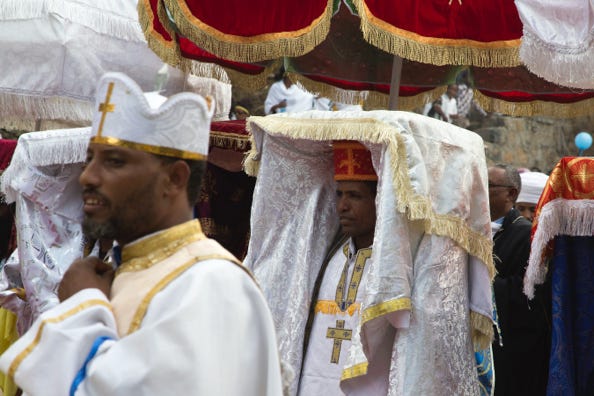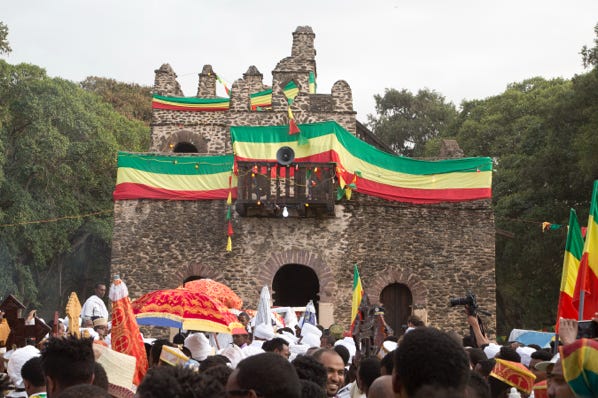Timkat is one of the biggest festivals for Ethiopian Orthodox Christians. It is the celebration of the baptism of Jesus though, for reasons I haven’t yet worked out, they also celebrate the Ark of the Covenant. (One Ethiopian myth is that the Ark was preserved in the country for many years.) Various churches in many towns, including Gondar, parade through the streets, bringing out their copies of the Ten Commandments.