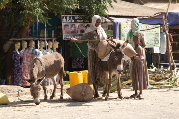The drive itself was fascinating. We went down dirt roads past farming communities. Men were ploughing with oxen, donkeys pulled carts piled high with hay or logs. Small stores were set next to farming compounds.