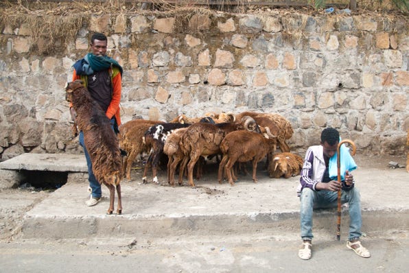 Another early start. We left the hotel at 7.30am, stopping only once on our four hour journey to Gondar. Today was the eve of Timkat, and Gabre wanted us to arrive before roads were shut off for the procession. The drive took us through rural countryside and small towns. We had to be careful when donkeys or sheep were on the road, and once had to come to a complete stop due to a suddenly suicidal chicken.