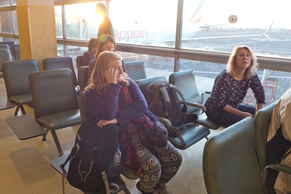 We left the hotel at 10.45am for the bumpy trip to Lalibela Airport. When we boarded the plane, we sat on the runway for about 30 minutes. Finally, the prop plane took off for the hour long flight to Addis Ababa.