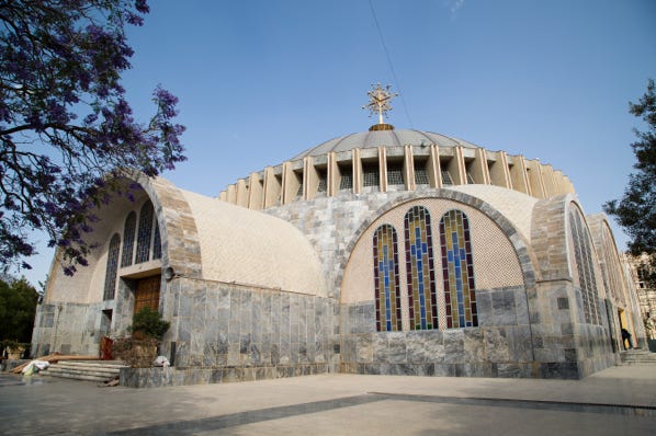 Final stop was St Mary of Zion church. The ruins of the original church, which date back to 330 AD, are near the modern building. Again, birds proved to be a distraction. A nearby tree was full of various types of sunbirds. Sunbirds look like hummingbirds, with their long beaks and iridescent feathers, but they grip branches to drink the nectar from flowers.