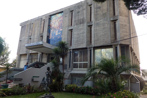 Last stop was the National Museum of Ethiopia. The major attraction is the hominid exhibit and, in particular, the bones of ‘Lucy.’ So much has been learnt about human evolution from discoveries in Ethiopia. I was thrilled to see the fossils, and I had my photo taken standing next to a mockup of Lucy’s full skeleton.