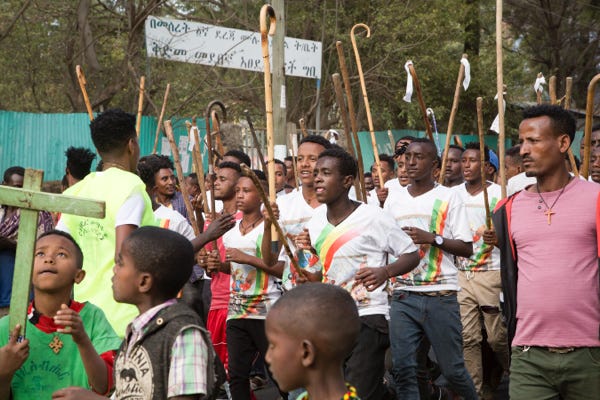 We went to a square where the procession was supposedly going to enter. After a half hour, Gabre found out that the procession had actually taken a different route. As we were missing a couple of people, he sent the rest us off in the right direction whilst he looked for the other two. We followed the sounds of drums and singing to find the procession, entering the crowds near the end.