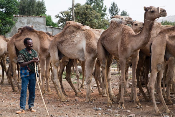After lunch, which was in an outdoor cafe which offered fast food, we went to the ruins of what is traditionally regarded as the palace of the Queen of Sheba. Archaeologists have cast down on this legend. We were distracted on route by a herd of at least 200 camels, gathered at the side of the road. Whilst we were at the site, the camel train went past, and was thoroughly photographed.