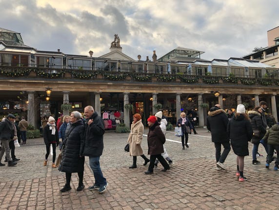 We arrived at Covent Garden, one of my favourite places in London. A four string quartet played in the lower levels, and man juggled swords nearby. We browsed the craft stalls, admiring the handicrafts but not buying any.