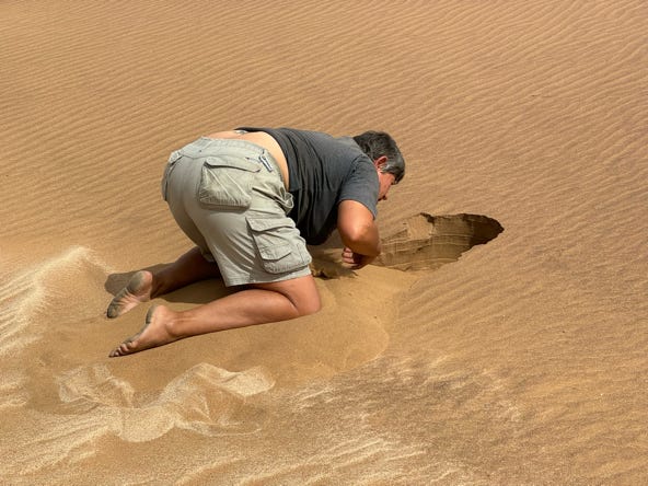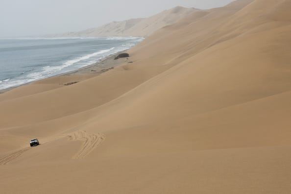 Another early rise, heading out at 5.15am. Our guide had arranged for us to be taken into the coastal sand dunes by another company, as they had the specially altered cars which enabled them to drive on the sand.