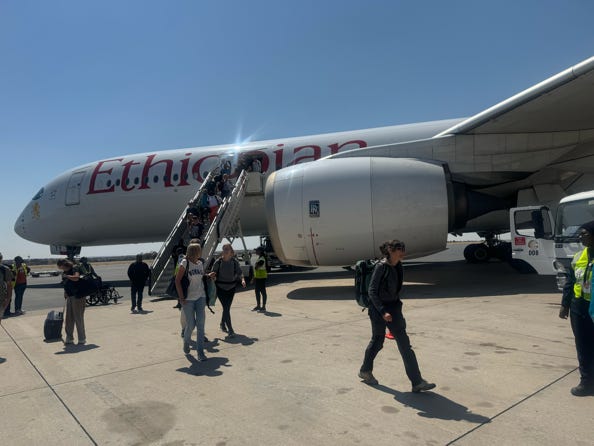 I did my best to get some sleep after the rather uninspiring meal. At Addis Ababa, I had just under two hours to change planes. Everyone had to go through security again, but the gate for the flight to Windhoek was only a short walk away. Then the woman behind the counter announced that the gate had been changed. This change was not reflected on the monitors, nor at the new gate, but the announcement did prove to be correct.