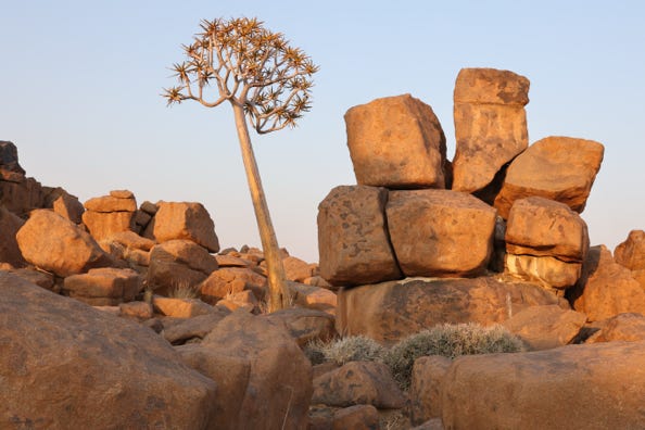 We arrived at our lodging near the Quiver Tree Forest in the early afternoon. Our rooms were off a shared common area which offered a small kitchen and a dining table. I crawled into my bed and had a nap.