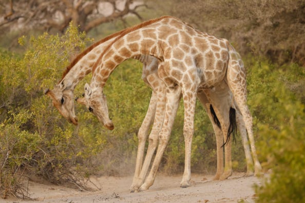 For some time we parked up at a different water hole, and watched how giraffes have to bend their long legs in order to drink. We admired some more elephants and a small group of mongeese before heading back for our dinner.