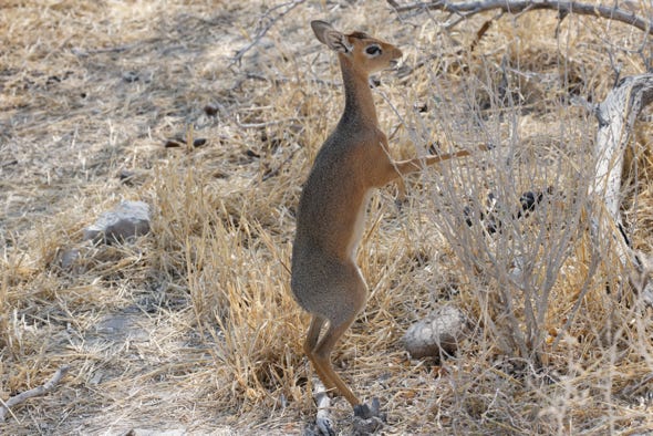 Driving down ‘Dik Dik Avenue’, we saw several of the diminutive creatures. Rather delightfully, one stood on rear legs in order to graze.