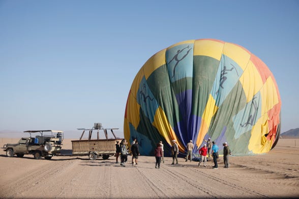 After an hour we landed back at base. My legs felt a bit wobbly as I exited the craft. Our driver was waiting for us. We started the drive back, held up for a few minutes by hot air balloons, one of which had landed on the road and was being deflated. We drove between balloon and support truck.