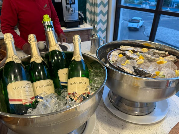 Evening meal was a buffet, which I partnered with the nice South African cider. The fire pit had been lit again, and the smoke smell was pleasant even it if did hang on to our clothes after we’d returned to our rooms.