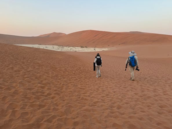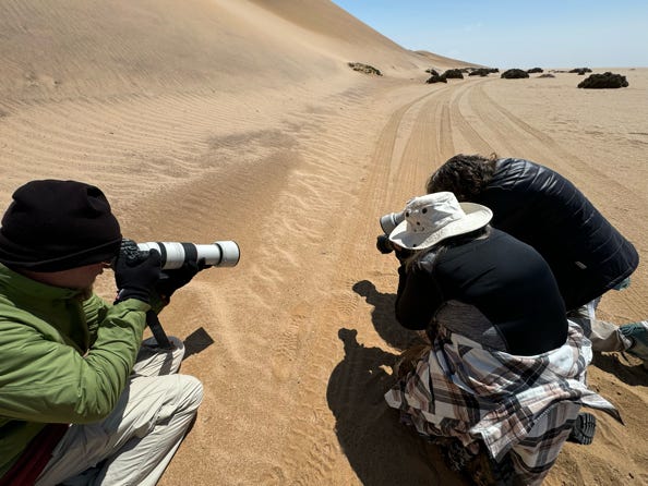 Late afternoon we drove out to the sand dunes for some sunset photography, stopping for animals along the way. We lined ourselves up for a sand dune which had a tree placed in a very compositionally pleasing way. A young Czech man asked us politely if he could go closer with his camera and tripod, and we reminded him that we didn’t own the area nor the view. But it was good of him to ask.