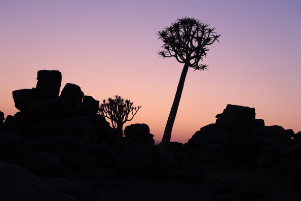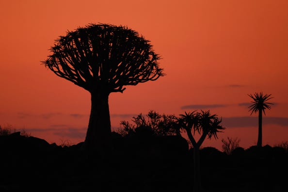 Afterwards we took the short drive to an area fenced off to preserve the quiver trees. Dassies, small rodent-like creatures, ran over the rocks and climbed up bushes to eat. They seemed rather unperturbed by humans. I took some general shots and decided which tree to photograph against the sunset. I set up my tripod and took a seat whilst I waited, simply happy to be feeling better and to be in a scenic area.