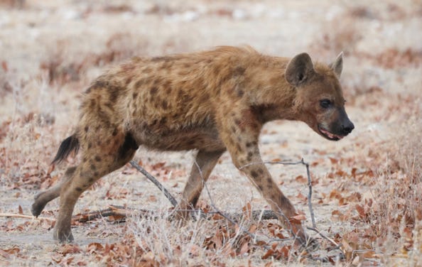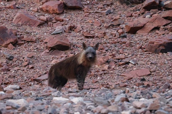 As we drove to the posh lodge to collect breakfast boxes, we spotted a brown hyena making his way near the hills. Despite the low pre-dawn light, we still took multiple photos of the creature. It was the first time I’ve seen a hyena in the wild.