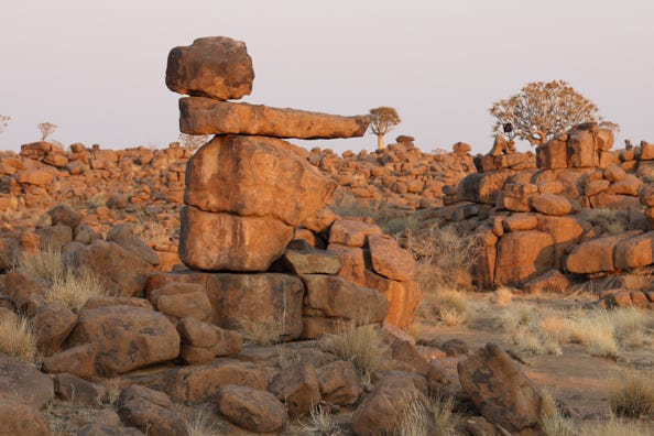 Woke up with a clear head when my alarm went off at 5.40am. I made myself a coffee in the common area and drank this whilst preparing for our pre-dawn drive out to the area called ‘The Giant’s Playground’. When we arrived, a half an hour before dawn, we could see why. Boulders piled on top of each other created all sorts of interesting shapes, as if giants had stacked them deliberately.