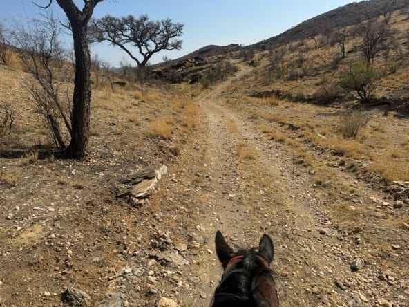 We set off down the track, conversing about horses and Namibia. The guide grew up riding horses, and he and his family have several of their own. He worked full time at the stables near the lodge, but was frustrated that he rarely had a day off and he didn’t the wages were good enough. But he wants to work with horses and wasn’t certain what else he could do.