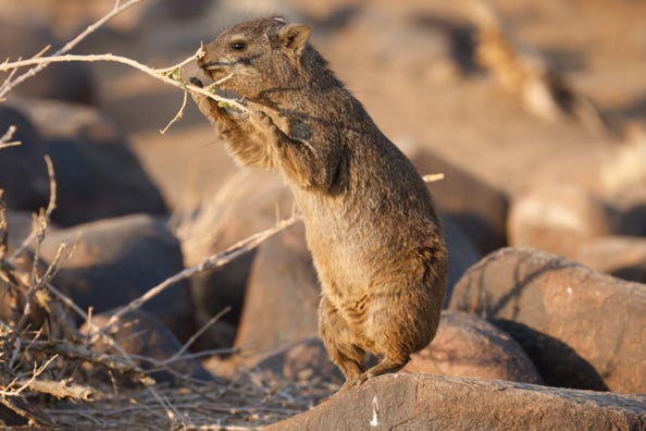 As with other lodges, we had our own cabin. The sides were canvas, with a straw roof. The toilet and shower were off to one side. The balcony looked over the valley, and lovebirds shrieked to each other in trees below. Other birds came and went, adding their own songs. One of our group had around sixteen dassies pose on the rocks near his room. I looked at the images he’d taken on his phone with some envy.