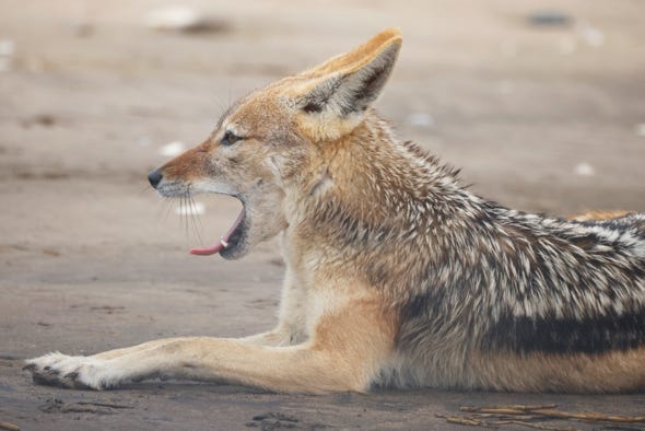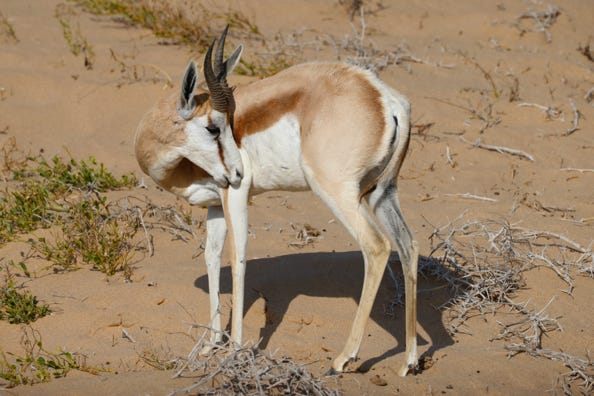 We continued along the dunes, travelling up and down to investigate the area for wildlife. The black-backed jackals mate for life, and we watched one pair climb up the sand together. By the actions of both, our guide decided that the female was on heat.