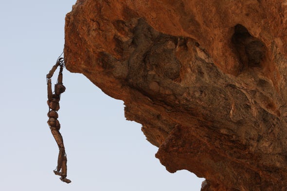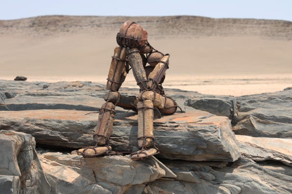 An artist has set up ‘stone men’ along the route. These are figures made of stone pieces, held together by metal struts, in various positions. Some had plaques alongside, most did not. There are around thirty of these, of which we saw five. Most were set on top of small rocky outcroppings. We saw a few animals, such as giraffes, and when we came to a halt we’d have to wait for the dust raised by our vehicle to settle before taking photographs.