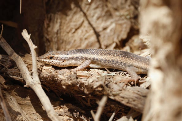Our guide was there. I was the first back. I collected my breakfast bag from the vehicle and ate whilst sitting at the nearby picnic table. Sparrows hopped around hopefully, and I threw them bits of bread. Later a skink appeared, posing nicely on a nearby tree.