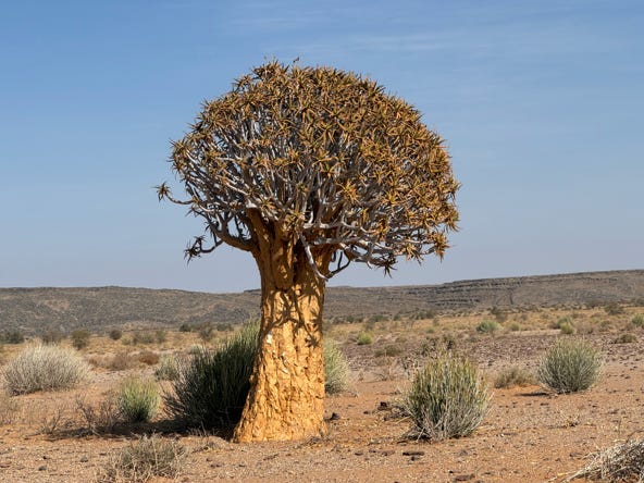 We departed at 9am and bumped back down the road, stopping at one point to photograph a three hundred year old quiver tree. Around noon we arrived at our next lodge, where we had lunch before checking into our rooms. As I was nearly caught up with photo processing, I took the opportunity to read emails and do some reading whilst sitting outside, where the temperature was pleasant and not too hot. I also did some hand washing and hung my clothing out to dry.