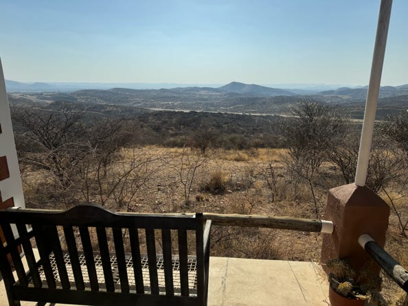 We left the park and started the seven hour journey down to Windhoek. Lunch was at a restaurant, and we made a couple of comfort breaks before arriving around 6pm at the same lodge we’d used at the start of our trip. It felt a bit odd to back at where we’d begun.
