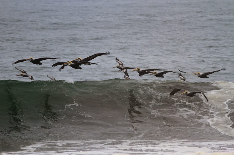 The rest of the group concentrated on the marsh birds. Since I wanted to be able to do some bird stalking (even with a 400mm lens you can still end up speck of bird) I went to the beach. I was stunned by the beauty of Peruvian pelicans doing synchronised flying over the waves--moved me to tears. Whilst continuing to photograph, of course. I also stalked a group of Whimbrel (what is the group name for Whimbrel? A whimsy of Whimbrel?) who obligingly took umbrage and flew down to the seashore. Much better for photos. There were also a number of riders exercising horses along the surf.