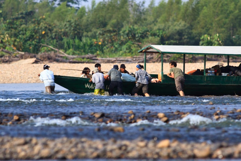 Then into the boats for the very long trek upriver. We travelled for around seven hours, with a couple of stops at stations where we had to sign a register (and which had toilets, which were acceptable once you chased the insects off the seats).