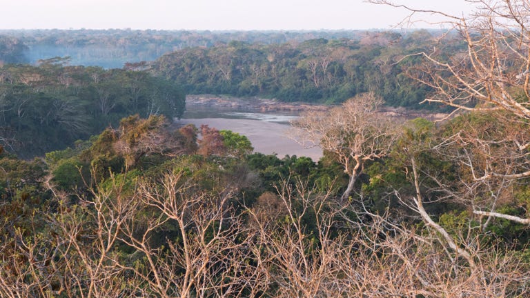The river is low, as this is the end of the dry season. A couple of times our guides had to use poles to push us over shallow areas, and once the man at the back of the boat got out to push. We saw people on another boat get out and all push. We also came across small gold mining operations, all legal, although the bash up of rusty metal implements makes one wonder.