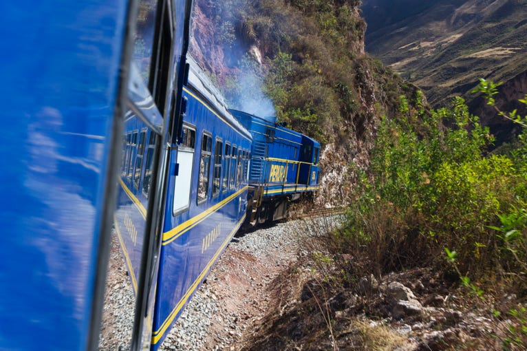 Our bus took us to the train station, where we boarded our train to Machu Picchu. Well, to the town of Aguas Calientes which is where most people stay for their visit. The morning was bright and sunny, and the views from the train were excellent—so long as you had a good seat. For the first 90 minutes the carriage was only half full, so we were able to move around quite freely. However at the next stop the carriage filled, so I had to return to my aisle seat with the half window view. My seat companion gave me his seat, and later on another in our group offered me hers with the idea that I could get a good photo of the Torrent ducks which inhabit the river which you can see from the train. Well, trying to get a focus on a duck from a small window on a moving train is quite a challenge!