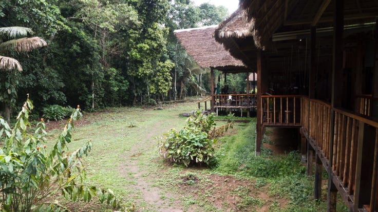 At Puerto Maldonado we crossed the tarmac at the small airport terminal. Our luggage was loaded on to the top of a bus and we were taken the short distance to the offices of Rainforest Expeditions—the company whose services and premises we’ll be using in the rainforest. There I filled a small duffle bag (as provided by the company) with the clothes I was taking up the river. I left behind my suitcase and other stuff, including the non-functioning camera and lens. We were assured that the storage is very secure.