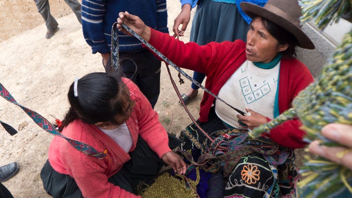 We stopped in one village because Jose had spotted a woman in traditional costume and he knew a number of us wanted photographs. She was happy to oblige for a small donation. Next thing we knew other villagers had come up. One enterprising woman brought with her a number of handicrafts which we proceeded to buy off her. A number of us ended up with rather fetching Mohican like knitted hats, some belt things, and some stone carvings.