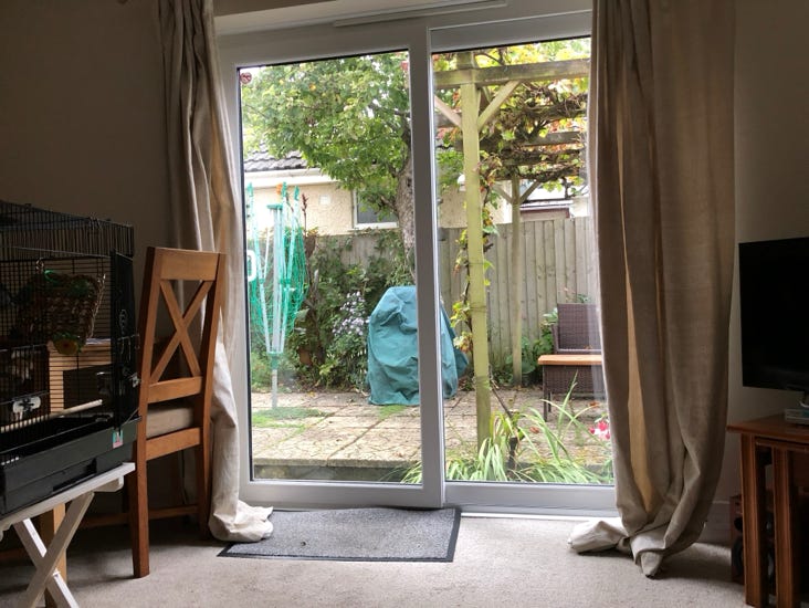 We arrived without incident to the small apartment we were renting for the week. I can only assume that it was originally a granny annex. The apartment was at the back of the owner’s house, with a separate entrance and a small patio. The inside comprised of a double bedroom, a toilet, a separate shower room, a lounge, and a very small kitchen. All adequate for a one woman and her small bird.