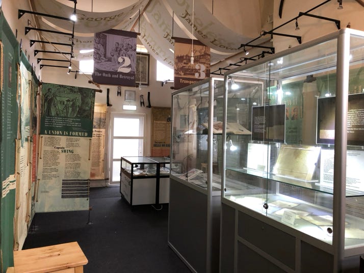 After lunch, I decided to go to Tolpuddle. A small museum there commemorates the Tolpuddle Martyrs, and according to its website was actually open to visitors. As I had only a vague notion of who these martyrs were, and a wet Sunday afternoon to fill, I headed back out on the wet roads.