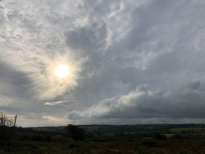 Dog walkers were out in abundance on the sweeping land of pasture and bracken. I set up tripod and camera and watched grey clouds scuttle across the sky. A lot of time, landscape photography is turn up and wait. The name of my photography website is ‘Stalking the Light’ for a reason.